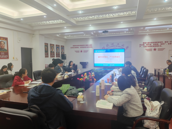 会上,副院长刘金菊作了题为“遵守学术规范,严守科研诚信”的专题报告,系统解读了国家关于科研诚信的相关政策文件,并结合实际案例,对科研成果失信行为的界定及第三方服务使用原则等方面作了详细说明。她强调,项目(课题)负责人和研究生导师应切实发挥言传身教的作用,加强对团队成员及学生的科研诚信教育与管理。学院党委副书记、纪委书记马彬彬从纪检监察角度对科研诚信建设作了重点提醒,并倡议全院师生要自觉恪守学术道德,严格遵守学术规范,共同营造风清气正的学术环境。随后,党政办公室就教职工进修计划以及财政岗位调整与聘用申报等相关工作进行了通知。