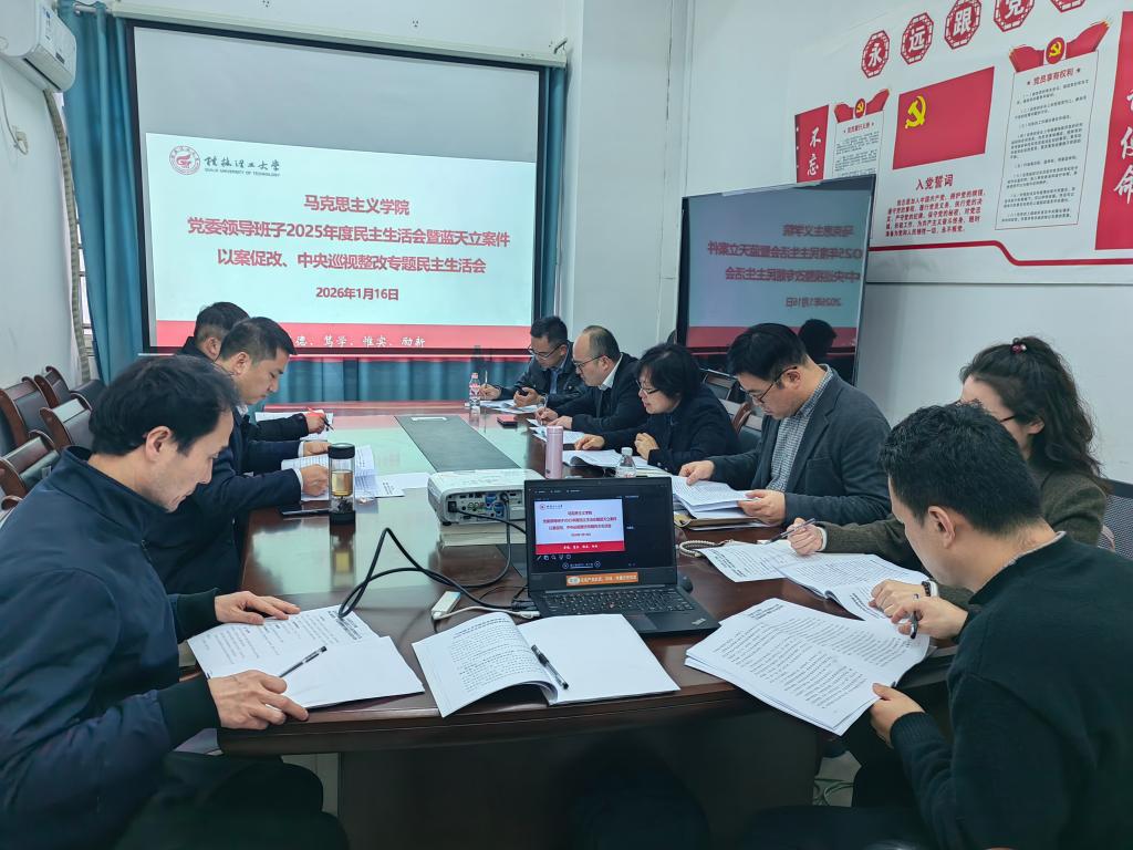 根据自治区以及学校党委的部署要求,1月16日下午,我院在屏风校区7110会议室组织开展党委领导班子2025年度民主生活会暨蓝天立案件以案促改、中央巡视整改专题民主生活会。会议深入学习贯彻习近平新时代中国特色社会主义思想和习近平总书记听取二十届中央巡视省(自治区、直辖市)情况汇报时的重要讲话精神,全面贯彻落实党的二十届四中全会精神,深入贯彻落实习近平总书记关于广西工作论述的重要要求,聚焦今年民主生活会主题和剖析重点,深化思想认识、找准思想根源,开展批评与自我批评。